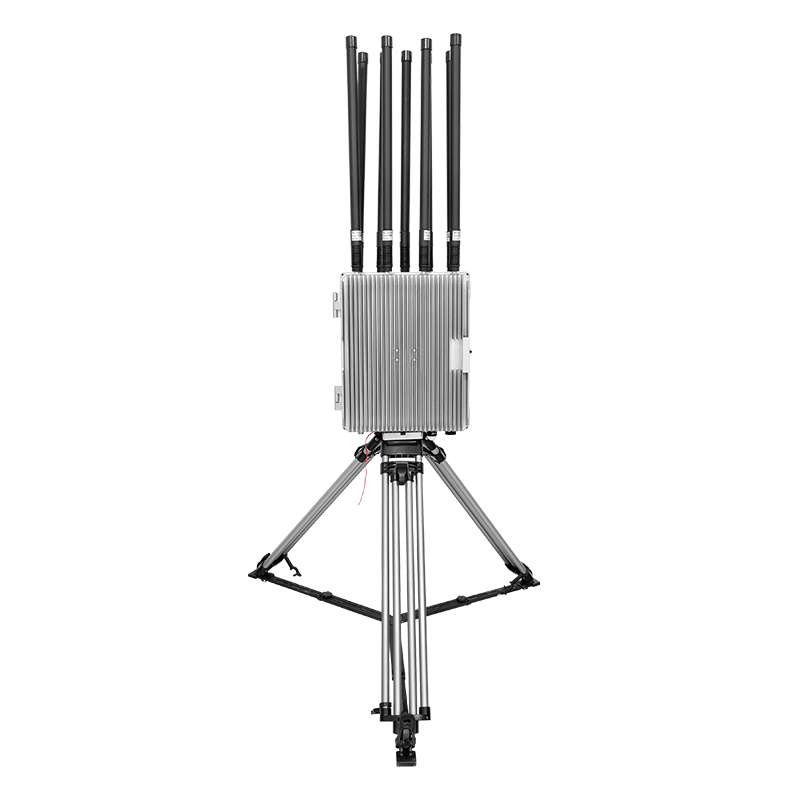 هذا جهاز تشويش طائرات بدون طيار في الهواء الطلق مع الكشف عن الجهاز.تحتاج إلى تثبيت ستة مسدودات اتجاهية صغيرة معًا للكشف التلقائي والضرب لتوفير حماية 360 درجة من جميع الأطراف للمناطق المنخفضة أو عالية الارتفاع. هذا المنتج لديه تصميم استبعاد الحرارة السفلي ويدعم العمل في الهواء الطلق عالية الطاقة. وهو ليس مجهزا ببطارية، ولكن مع مصدر الطاقة 220 فولت فائق الأداء.يمكن أن تحدد تلقائيًا وتتداخل مع الطائرات بدون طيار المحيطة